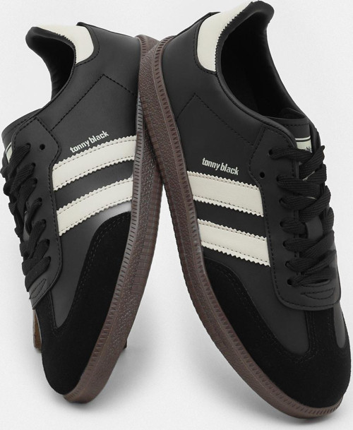 Tonny Black Kadın Siyah Bej Termo Taban Yanı Şeritli Bağcıklı Spor Ayakkabı