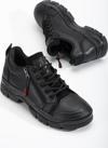 Kadın Siyah Termo Taban Fermuar Detaylı Bağcıklı Günlük Ayakkabı