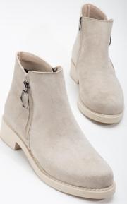Tonny Black Kadın Ten Cilt Termo Taban Tokalı Çift Fermuarlı Kısa Topuklu Bot