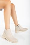 Tonny Black Kadın Ten Cilt Termo Taban Üç Taş Halatlı Fermuarlı Kısa Topuklu Bot