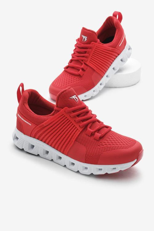 Unisex Kırmızı Tasarım Termo Taban Şeritli Nefes Alabilen Kumaş Bağcıklı Spor Ayakkabı