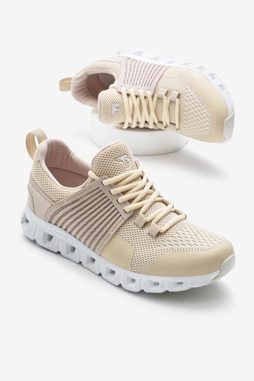 Unisex Krem Tasarım Termo Taban Şeritli Nefes Alabilen Kumaş Bağcıklı Spor Ayakkabı