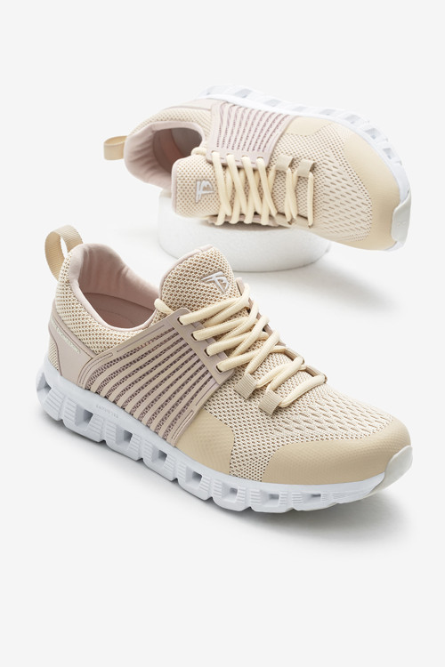 Unisex Krem Tasarım Termo Taban Şeritli Nefes Alabilen Kumaş Bağcıklı Spor Ayakkabı