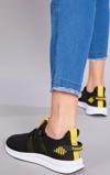 Tonny Black Unisex Siyah Sarı Rahat Kalıp Yanı Şerit Deseli Bağcıklı Spor Ayakkabı