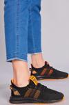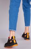 Unisex Siyah Turuncu Rahat Kalıp Yanı Şerit Deseli Bağcıklı Spor Ayakkabı