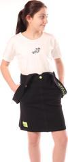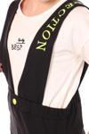 Salopet beli lastikli, düğme detaylı, alt etek armalıdır.