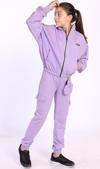 Riccotarz Kız Çocuk Kapüşonlu Sweatshirt Beli Lastikli Fitilli Lila Alt Üst Takım