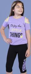 Toontoy Kız Çocuk Kolları Şerit Detaylı Baskılı Taytlı Takım