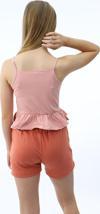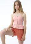 Tişört ince askılıdr, önü düğmeli, alt etek fırfırlıdır.