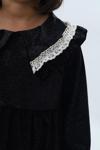 Yaka tüllü, detaylıdır.