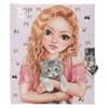 TOP Model Kitty and Doggy Kilitli Günlük, çocukların sırlarını ve özel notlarını güvenle saklaması için tasarlanmıştır. Kalp şeklindeki kilidi, ön yüzündeki harika model motifi ve çok sayıda sevimli kedi baskısı ile hem eğlenceli hem de şık bir tasarım sunar.