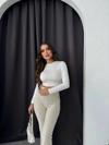 Vogsign Bej Yüksek Bel Toparlayıcı Şardonlu Fitilli Tayt Bej  - Image 1