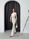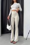 Kadın Yüksek Bel şerit Detaylı Ispanyol Paçalı Dalgıç Pantolon - Image 1