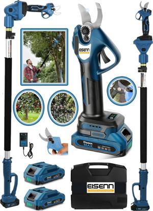 E-4230-S Teleskop Uzatmalı + Çift Akü 10 Pilli Bağ Budama Makası 32 MM Çelik Bıçak