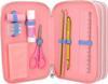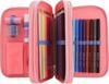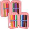 - Üç ayrı bölme 18 adet boyama ve keçeli kalem, 2 kalem, kalemtıraş, silgi, cetvel, makas, yapıştırıcı çubuğu ve küçük bir Velcro kese ile doludur.