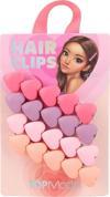 - Doyurucu saç modelleri için: TOP Model'den mor, lila, pembe ve şeftali renklerinde beş küçük kalpli 4 saç tokası.