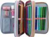 - Üç ayrı bölme 18 adet boyama ve keçeli kalem, 2 kalem, kalemtıraş, silgi, cetvel, makas, yapıştırıcı çubuğu ve küçük bir Velcro kese ile doludur.