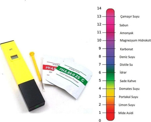 Dijital pH Metre Nedir? Dijital pH metre ile sıvıların asidik mi bazik mi olduğunu ölçebilirsiniz (00-14 aralığında ölçüm yapmaktadır) bunun yanında topraksız tarımda kullanacağınız suyun pH seviyesini ölçme işleminde kullanılmaktadır. Dijital pH metre cep cihazıdır kolaylıkla taşıyabilirsiniz. Ölçüm yapmak için pH metrenin uç kısmındaki probu suya daldırıp ölçüm yapabilirsiniz. DİJİTAL KISMI SUDAN SAKININ. Dijital pH Metre Nasıl Kalibre Edilir? Öncelikle 6.86 sıvısını 250ml oda sıcaklığındaki saf su ile çözün.