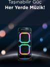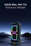 Mikrofon uyumluluğu: Hoparlör 2 adet şarj edilebilir kablosuz mikrofon girişi ve 2 adet kablolu mikrofon ve gitar portu ile donatılmıştır. Karaoke veya canlı müzik enstrümanları için kullanımı kolaydır.