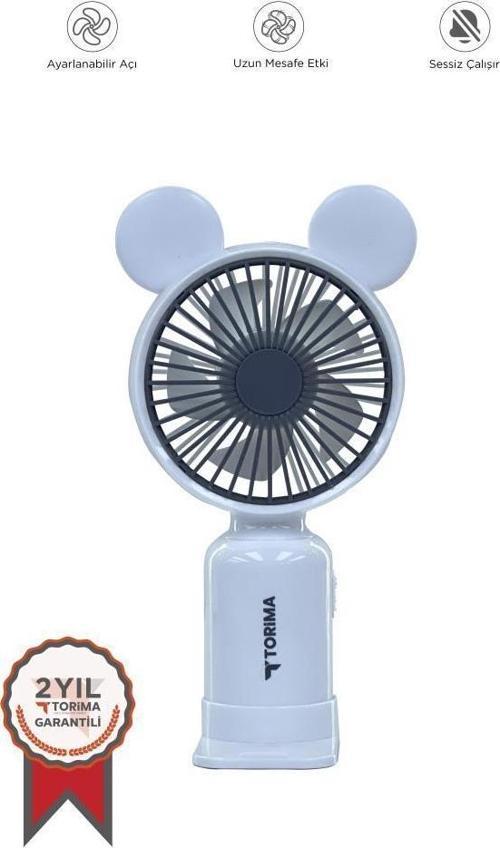 Torima F-12 Beyaz Mini Taşınabilir Fan Şarjlı 2 Kademeli Ledli Ayıcık Kulak Vantilatör Klima Soğutucu Fan
