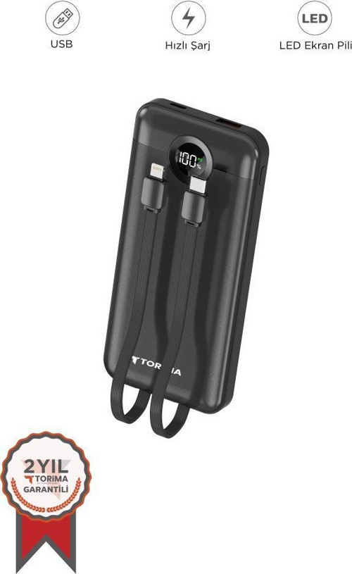 Torima TRM-1015 Siyah 10000mAh 2 Çıkışlı Taşınabilir Hızlı Şarj Dijital Göstergeli Powerbank