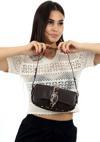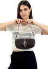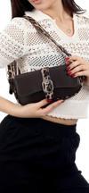 Leopar ayrıntılı kadın omuz ve el çantası aynı zamanda uzun askı sayesinde çapraz kullanım olarak da kullanılabilir.