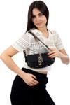 Leopar ayrıntılı kadın omuz ve el çantası aynı zamanda uzun askı sayesinde çapraz kullanım olarak da kullanılabilir.