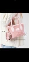 Peluşlü orta çapraz ve el çantası,içi astarlı iç astarlı fermuarlı cepli,çanta ağız kapatması fermuarlı Cüzdanlık bölmesi(yavrusu) mevcut uzun askısı sayesinde çapraz kullanım kolaylığı, su itici içi astarlı iç astarın fermuarlı cebi mevcut.