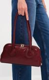 Torime Retro Tarz Bordo Yumuşak Parlak Rugan Deri Uzun Taşıma Saplı Omuz, Kol Ve El Çantası