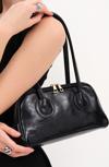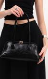 ALECIA Retro Tarz Parlak Rugan Suni Deri Uzun Taşıma Saplı Omuz, Kol ve El Çantası