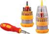 31 parçalık Tornavida Seti sayesinde ufak tamir işleriniz için artık tamircilere para ödemeyin! Vida sıkmak gibi basit işlerinizi kendiniz yapabileceksiniz. Değişik uç ve büyüklüklerden oluşan mükemmel ergonomik tasarımlı bir tornavida setidir. Ürün Özellikleri Laptop cep telefonu vb. cihazlara uyumlu başlılar. Metal başlıklar İnce ve küçük yerlere ulaşabilmesi için tasarlanmıştır. Kauçuk tutma yerleri Mıknatıslı uçlar Ürün Ölçüleri 10 cm x 5 cm x 5 cm Paket İçeriği 1 adet Tornavida Sapı 30 adet Mıknatıslı Tornavida Başlıkları