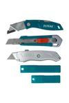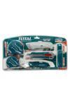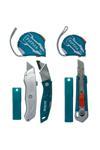 Total TOS23037E Şerit Metre ve Maket Bıçağı Falçata Seti 7 Parça Maket Bıçakları 18 mm sürgülü tip, katlanır tip ve trapez maket bıçağı Alüminyum döküm gövde 18 mm genişlik Şerit Metreler İç mekanizması sürtünmeyi en az düzeye indirgeyecek biçimde tasarlanmış.