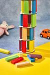 Totteriq Renkli Tower Plus Jenga Büyük Boy Doğal Ahşap Denge Kule Oyunu Tower