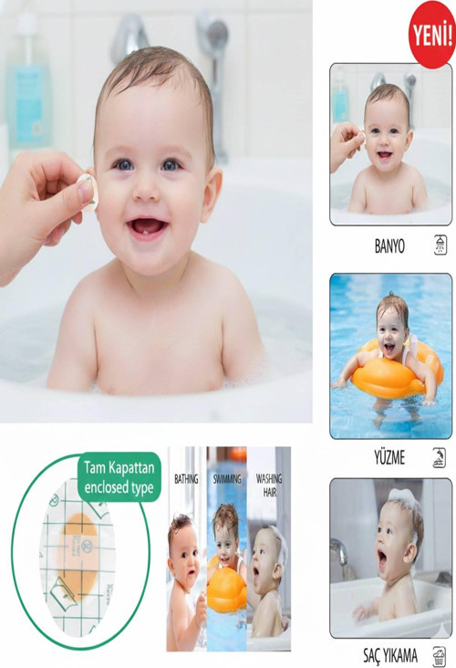Su geçirmez yapışkanlı bebek kulak koruyucu bant, kulakları tamamen kapatan özel yapısı sayesinde su girişini önlemeye yardımcı olur ve kulak sağlığını destekler.