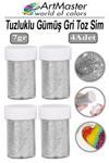ArtMaster Toz Sim Gümüş Gri 4 Adet 7 Gr Tuzluklu Etkinlik Ders Okul Slime Dekorasyon Renkli Toz Sim Dekor Süsleme