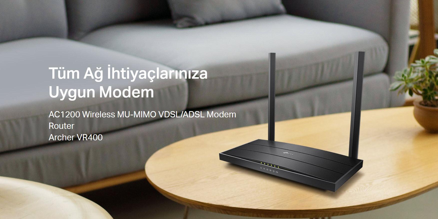 TP-Link Tp-lınk Archer Vr400 V3, Ac1200, 4 Port, Dual Band Wifi, 1200mbps, 2×anten, 3g-4g Usb Desteği, Vdsl2
