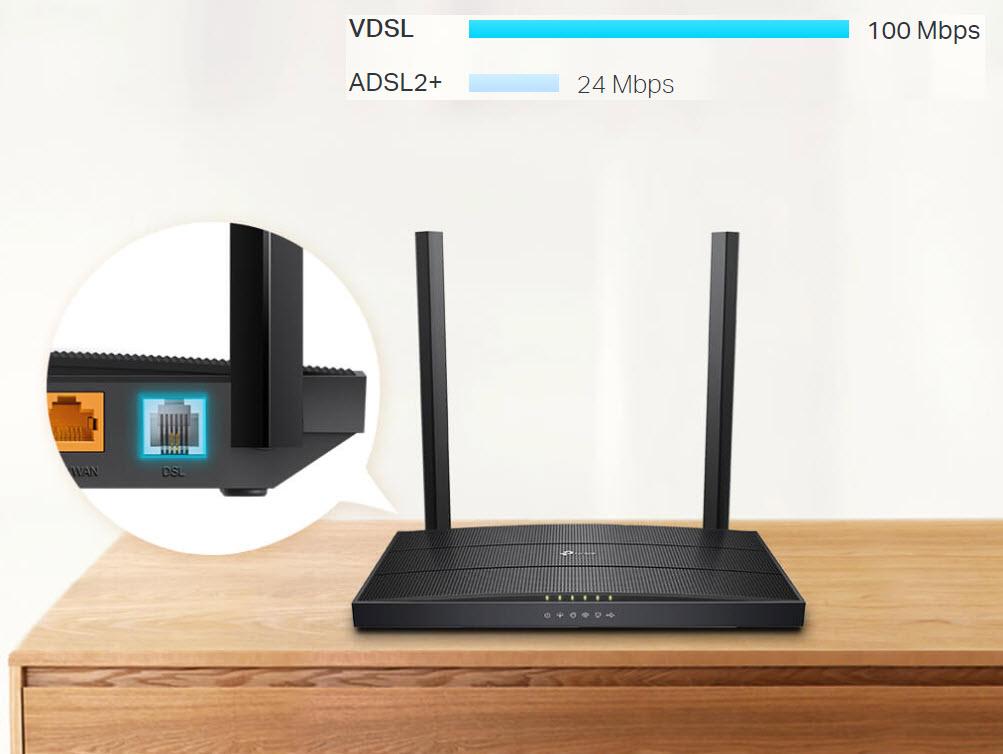 Gelişmiş VDSL2 teknolojisi, Archer VR400'ün 100 Mbps'ye varan etkileyici VDSL geniş bant hızları - ADSL2 + 'dan yaklaşık 4 kat daha hızlı - sunmasını sağlar. Archer VR400, iki cihazı bir arada birleştiren bir DSL modem ve kablosuz yönlendirici görevi görür.