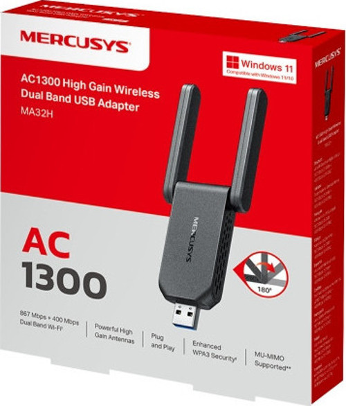 Tp-Link Mercusys MA32H AC1300 High Gain 2 Anteli USB 3.0 Kablosuz Ağ Adaptörü