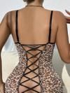 Vahşi çekiciliğini ortaya çıkar! Leopar desenli transparan tül kumaşıyla cesur, arkası çapraz ipli detayıyla büyüleyici bir görünüm sunan bu gecelik; zarafet ve tutkunun mükemmel birleşimi.