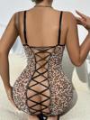 ? Transparan Leopar Tül Arkası Çapraz İpli Fantezi Gecelik ?