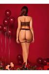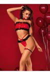? Transparan Siyah-Kırmızı Fantezi Bacak Bantlı Sütyen Külot Takımı ?