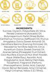 Doğal Yağlar: Avokado Yağı, Macadamia Yağı, Tatlı Portakal Yağı, Tatlı Badem Yağı, Çuha Çiçeği Yağı, Aspir Yağı, kuruluğu önlemeye yardımcı olmak için cildi besler ve rafine, ışıltı için nemi dengeler.