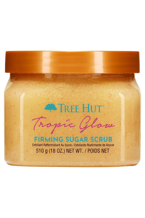Tree Hut Tropic Glow Firming Sugar Scrub Vücut Peelingi, şeker tanecikleri sayesinde cildi nazikçe arındırarak ölü derilerden temizler ve pürüzsüz, parlak bir cilt görünümü kazandırır. Shea yağı, cupuaçu yağı ve guarana özleri ile zenginleştirilmiş formülü, cildi derinlemesine besler ve nem dengesinin korunmasına yardımcı olur.
