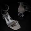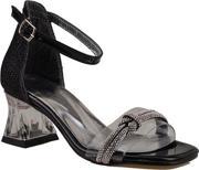 26-30 numaralarında 3 cm, 31-35 numaralarında ise 5 cm şeffaf topuk seçenekleri bulunur.Ayakkabının taş bant detayları, ayakkabıya zarif bir dokunuş katar.