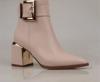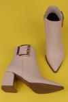 5109-3042 Bej Toka Aksesuarlı Fermuarlı Kalın Topuklu Günlük Kadın Bot - Image 1