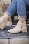 Kalın tabanı ve sivri yumurta burun tasarımıyla öne çıkan Laura kadın süet bot, 3 cm topuğa sahiptir.