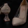 6,5 cm şeffaf örgülü topuk, yuvarlak sivri burun ile birleşerek şıklığı ve konforu bir araya getiriyor.