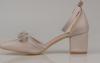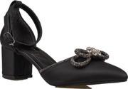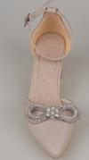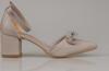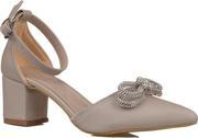 Saten-süet karışımı dış yüzey, yumuşak ve şık bir görünüm sağlarken, taşlı fiyonk detayı modele zarafet katıyor. 5 cm kalın topuğu gün boyu konforlu bir kullanım sunar.