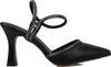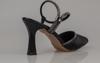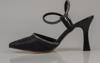 Saten dış yüzeyi lüks bir dokunuş sunarken, yan kısımdaki taş işlemeli sarma detayı, ayakkabıya ışıltılı bir görünüm kazandırır. 9,2 cm ince topuk, feminen ve zarif bir duruş sağlar