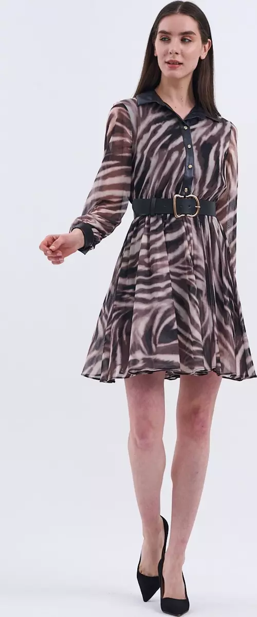 - Geniş siyah kemeri ve büyük tokası ile belinizi vurgulayan bu elbise, her ortamda dikkat çekmenizi sağlayacak.